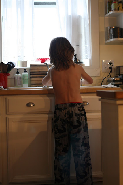 The poor thing made himself ill by scarfing down three granola bars & three apple juice boxes while I was in a PTA meeting. He felt really terrible and had to sit out during his basketball practice. I know this isn't funny per se, but it's a first for us. Gluttony was never one of his personality traits and after this episode, I don't think we'll see the likes of it again anytime soon.